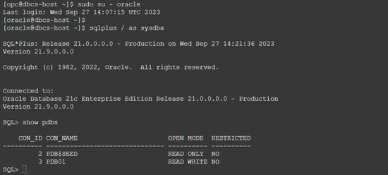see at the end of output, the DB host named dbcs-host is created with 10.0.1.50